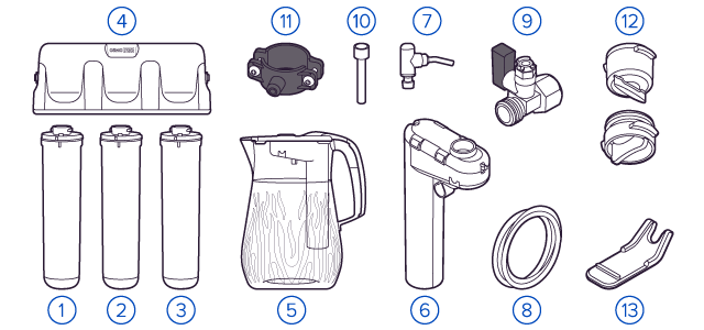 Картриджи последовательно очищают воду и от видимых примесей, и от растворенных. Первый картридж задерживает более крупные частицы, а каждый последующий - более мелкие. Чем больше ступеней - тем лучше фильтр очистит воду: поймает более мелкие видимые частицы ржавчины, песка и ила, успеет захватить из воды максимум растворенных примесей - хлора, нитратов, тяжелых металлов и других.